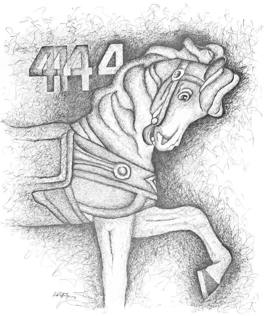 Carousel Pony – 30×36″ Original Pencil Drawing (unframed) Mailable in a tube. $350.