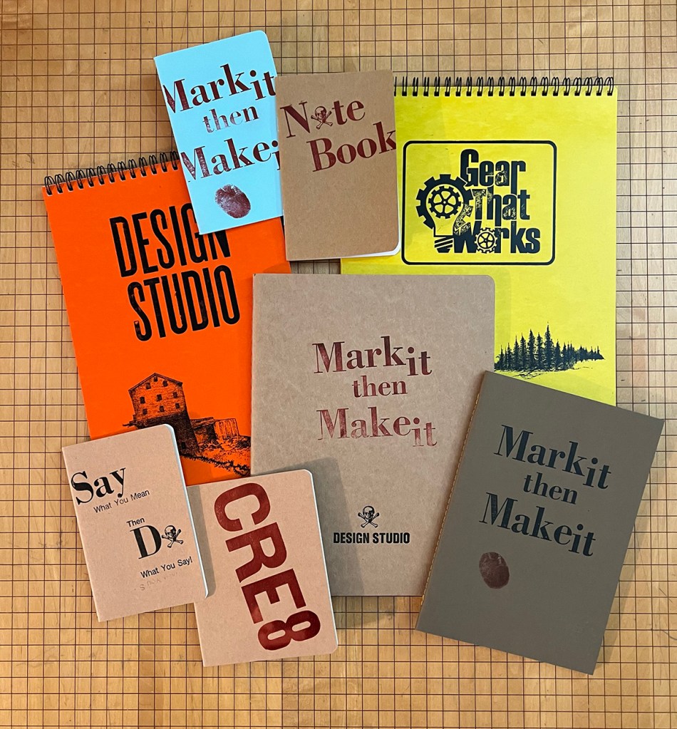 Be Ready for Inspiration with my custom sketch books and field style note books. Original designs, printed by hand on my century-old letterpress equipment. Many designs available in-stock or call for a custom order. Starting at $10.
